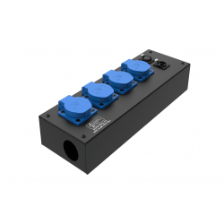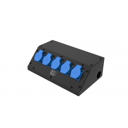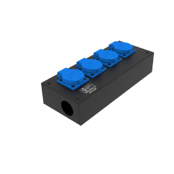 4 розетки Schuko 16А. Два отверстия Ø37 мм под трубу. Габариты: 280x202x110 мм.