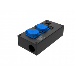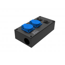 Коробка розеточная ТТС серии KPC стальная прямая. 2 розетки Schuko 16А. 1 разъем XLR 3-pin female. Два отверстия Ø37 мм под трубу. Габариты: 224х116х77 мм. Вес 0,89 кг.