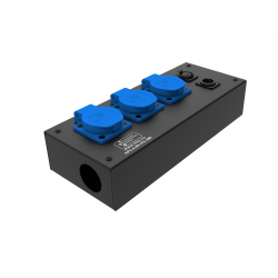 Коробка розеточная ТТС серии КРC стальная прямая. 3 разъема PowerCON . Два отверстия Ø37 мм под трубу. Габариты: 161х114х85 мм.