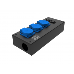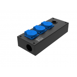 Коробка розеточная ТТС серии KPC стальная прямая. 3 розетки Schuko 16А, 1 разъем XLR 5-pin female. Два отверстия Ø37 мм под трубу. Габариты: 285х116х77 мм. Вес 1,38 кг.