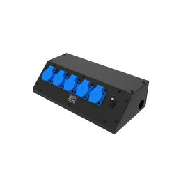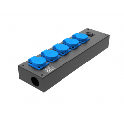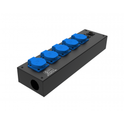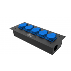 5 розеток Schuko 16А. Два отверстия Ø37 мм под трубу. Габариты: 342x202x110 мм.