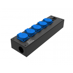 Коробка розеточная ТТС серии KPC стальная прямая. 5 розеток Schuko 16А, 1 разъем XLR 5-pin female. Два отверстия Ø37 мм под трубу. Габариты: 409х116х77 мм. Вес 2,12 кг.
