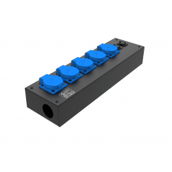 Коробка розеточная ТТС серии KPC стальная прямая. 4 розетки Schuko 16А, 1 разъем XLR 5-pin female. Два отверстия Ø37 мм под трубу. Габариты: 347х116х77 мм. Вес 1,9 кг.