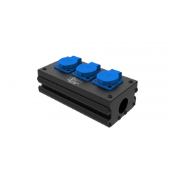 Коробка розеточная серии КРА из алюминиевого профиля на 3 розетки Schuko с крышкой. Два отверстия Ø 37 мм под трубу или гермоввод PG29. Габариты: 215х115х85 мм. Вес 0,95 кг.