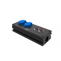 Коробка розеточная серии КРА из алюминиевого профиля на 2 розетки Schuko с крышкой, 1 разъем XLR3F, 1 разъем XLR3M. Два отверстия Ø37 мм под трубу или гермоввод PG29. Габариты: 223х116х78 мм. Вес 0,95 кг.