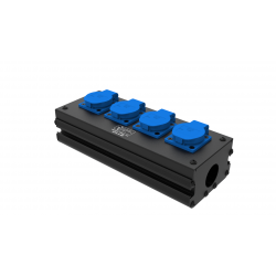 Коробка розеточная серии КРА из алюминиевого профиля на 4 розетки Schuko. Два отверстия Ø 37 мм под трубу или гермоввод PG29. Габариты: 285х116х78 мм. Вес 1,20 кг.