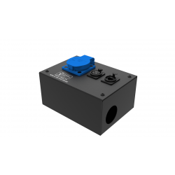 Коробка розеточная ТТС серии KPC-В стальная встраиваемая, 1 розетка Schuko 16А, 1 разъем XLR 5-pin female. Два отверстия Ø37 мм под трубу. Габариты: 156x202x110 мм.