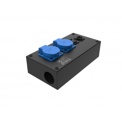 2 розетки Schuko 16А, 1 разъем XLR 3-pin female, 1 разъем RJ-45.