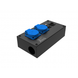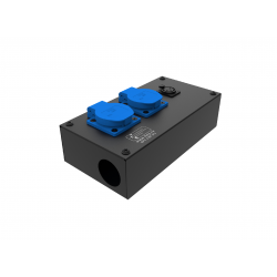 Коробка розеточная ТТС серии KPC стальная прямая. 2 розетки Schuko 16А. 1 разъем XLR 3-pin female. Два отверстия Ø37 мм под трубу. Габариты: 224х116х77 мм. Вес 0,89 кг.