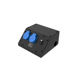 Коробка розеточная ТТС серии KPC-C стальная скошенная, 2 розетки Schuko 16А, 1 разъем XLR 3-pin female. Два отверстия Ø37 мм под трубу. Габариты:...