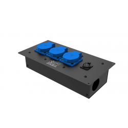 Коробка розеточная ТТС серии KPC-C стальная скошенная, 3 розетки Schuko 16А, 1 разъем XLR 3-pin female, 1 разъем RJ-45. Два отверстия Ø37 мм под трубу....