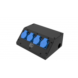 Коробка розеточная ТТС серии KPC-C стальная скошенная, 4 розетки Schuko 16А. Два отверстия Ø37 мм под трубу. Габариты: 281х114х206 мм.