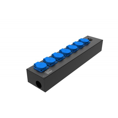 Коробка розеточная ТТС серии KPC стальная прямая. 7 розеток Schuko 16А, 1 разъем XLR 3-pin female. Два отверстия Ø37 мм под трубу. Габариты: 533х116х95 мм. Вес 3,06 кг.