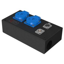 Коробка розеточная ТТС серии KPC стальная прямая. 2 розетки Schuko 16А, 2 разъема XLR 5-pin female. Два отверстия Ø37 мм под трубу. Габариты: 223х116х78 мм.