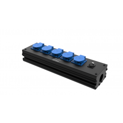 Коробка розеточная на 5 розеток Schuko и 1 разъем XLR 3-pin female (мама). Корпус из фирменного алюминиевого профиля со стальными элементами. Два отверстия Д37 мм под трубу или гермоввод PG29. Габариты: 409х116х78 мм. Вес 1,7 кг.