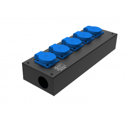 Коробка розеточная ТТС серии КРC стальная прямая, 5 розеток Schuko 16А. Два отверстия Ø37 мм под трубу. Габариты: 347х116х77 мм. Вес 1,87 кг.