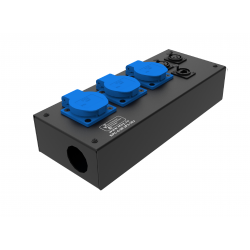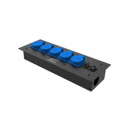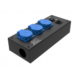 Коробка розеточная ТТС серии КРC стальная прямая. 3 розетки Schuko 16А, 2 разъема XLR 5-pin: female, 1 разъем RJ-45. Два отверстия Ø37 мм под трубу. Габариты: 285х116х77 мм. Вес 1,57 кг.