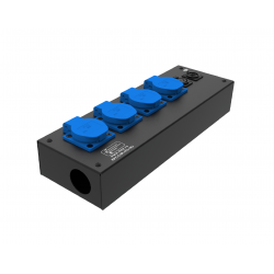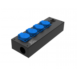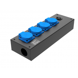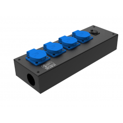 Коробка розеточная ТТС серии КРC стальная прямая. 4 розетки Schuko 16А, 2 разъема XLR 5-pin: female и male. Два отверстия Ø37 мм под трубу. Габариты: 347х116х77 мм. Вес 1,91 кг.