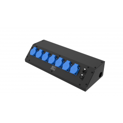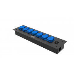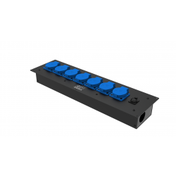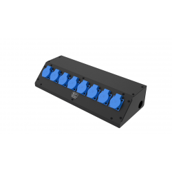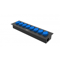 8 розеток Schuko 16А. Два отверстия Ø37 мм под трубу. Габариты: 528x202x110 мм.