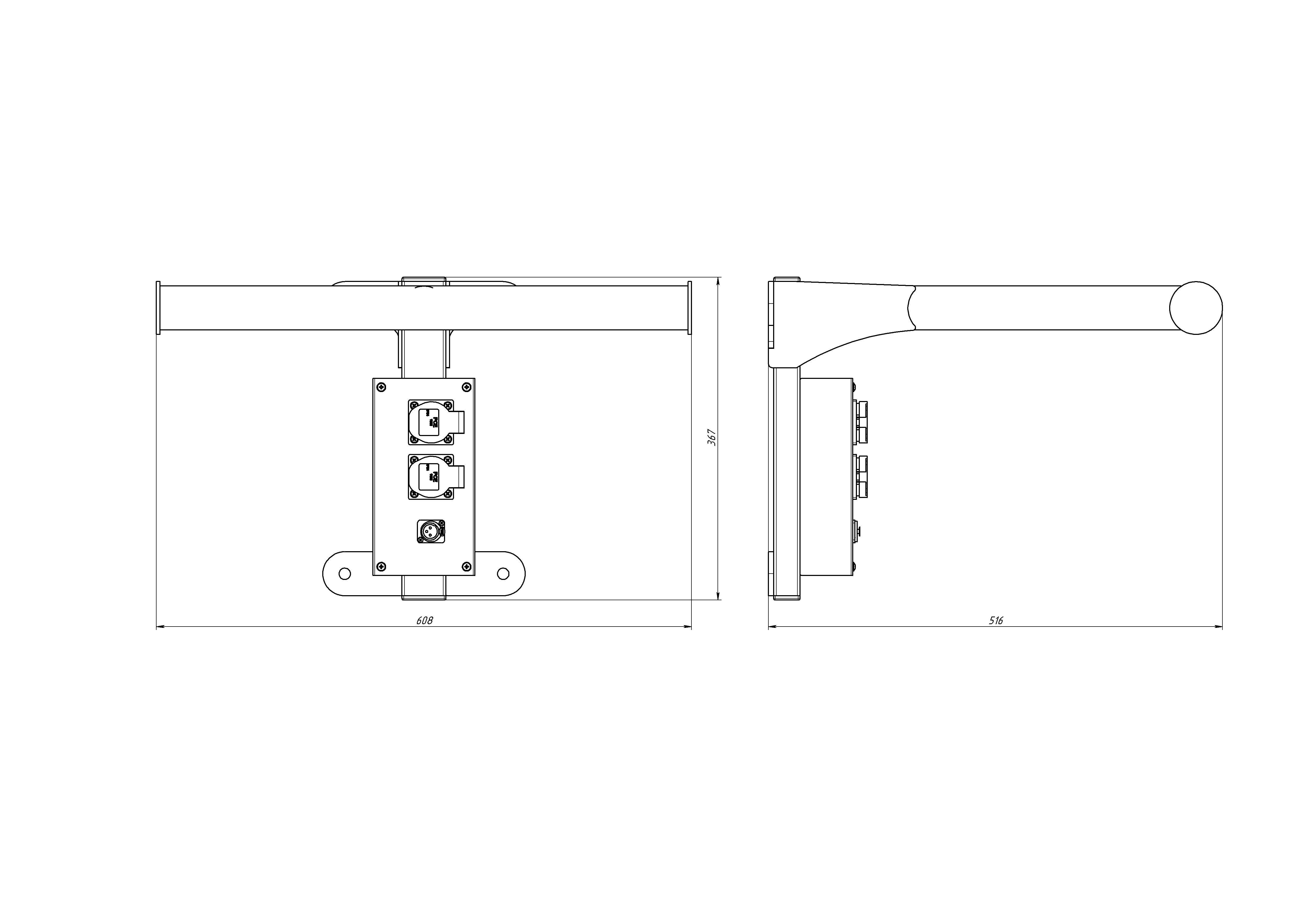 Кронштейн фронтально-бокового света (боковых балконов левого/правого) для установки 1-го светового прибора. Сталь. Одна консоль диаметром 50 мм, длина 950 мм. Нагрузка на консоль до 50 кг. Масса 10,2 кг.